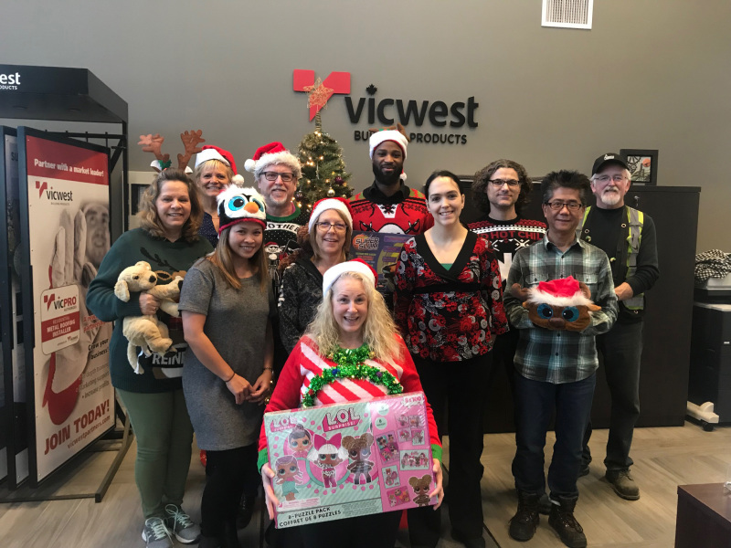 After the reception came the distribution of posters and boxes all over the Acheson Industrial Area and beyond to collect donations of toys and non-perishable food. A big thank you goes out to Monarch Exterior & Roofing Centre for their generous donation that helped purchase all of the boxes we needed for the campaign.